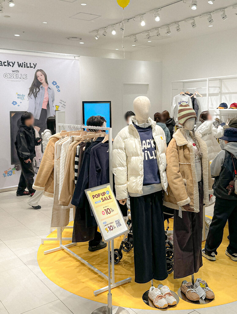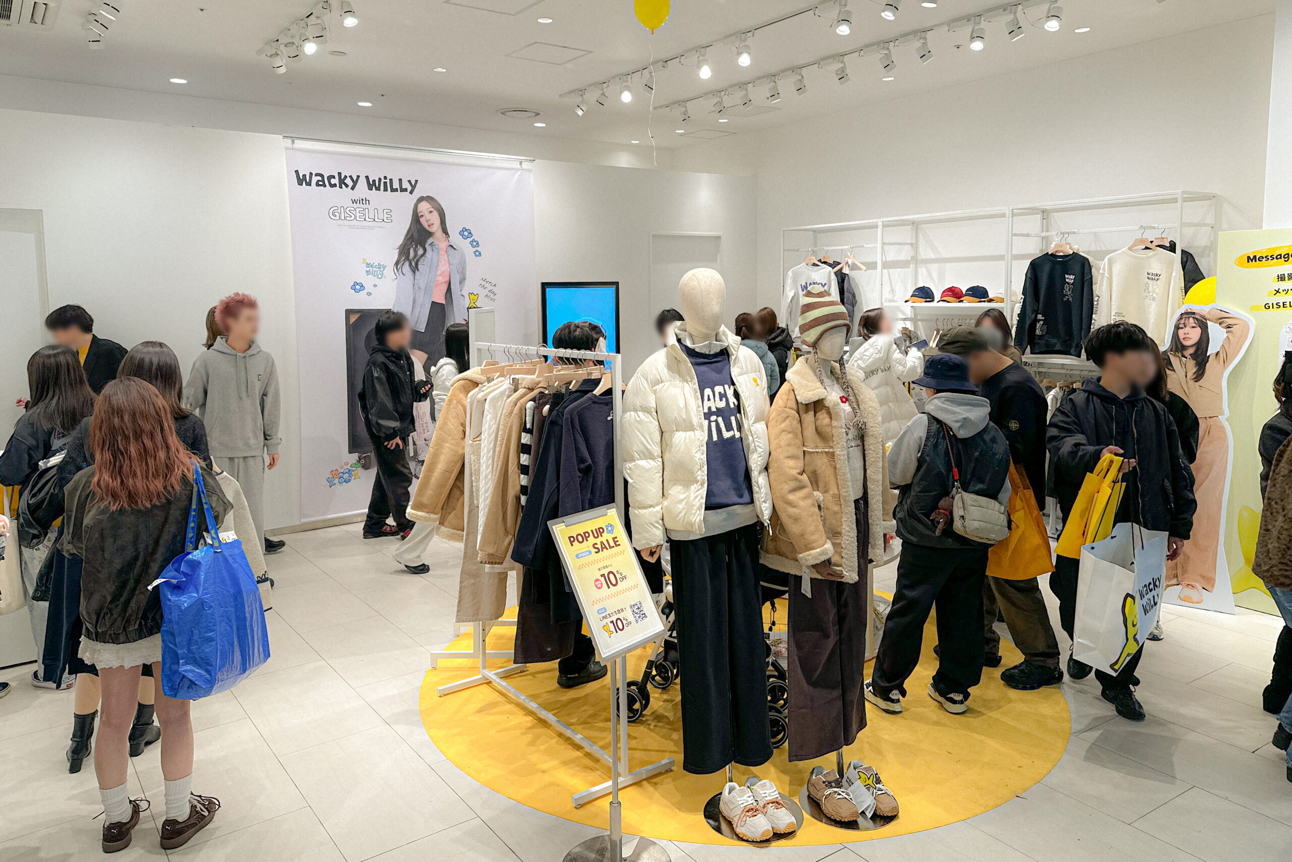 韓国発、トレンドとカルチャーを愛するすべての人のためのカジュアルブランド「WackyWiLLy」のPOPUPイベント。 会場にはブランドアンバサダー・GISELLEへの応援メッセージボードが設置され、来場者が思い思いのメッセージを残して楽しむ光景が広がました。 さらに、トゥンカロン配布イベントをはじめ、先着・購入者向けノベルティやLINE登録者特典など、多彩な企画がありました。 オープン初日には店外まで列が伸びるほどの盛況ぶりを見せ、週末には3,000名来場を記念した大規模セールも実施されるなど、連日大きな注目を集めました。